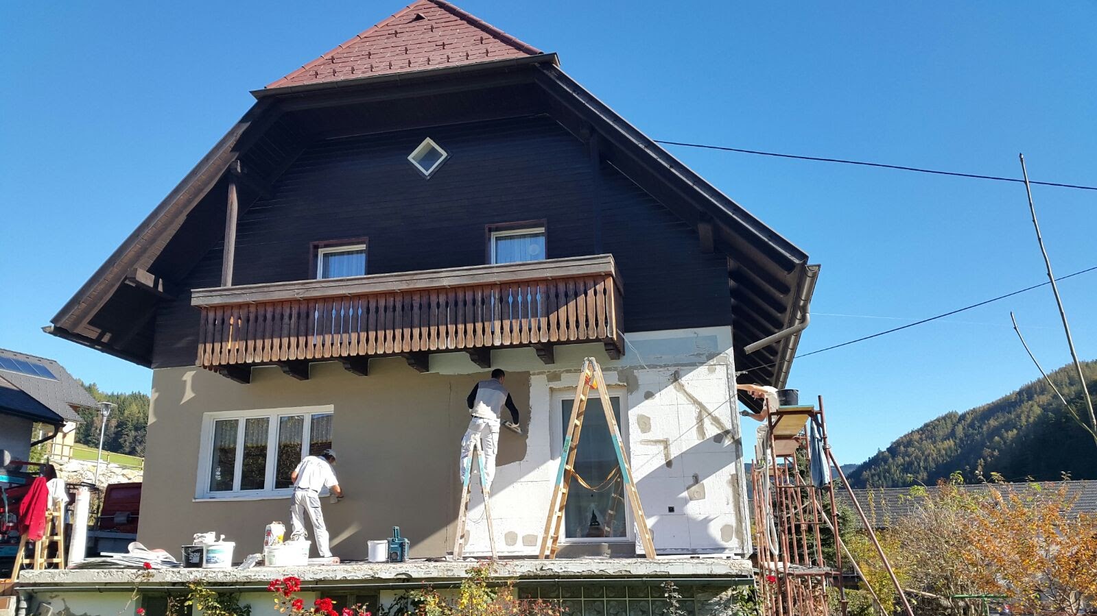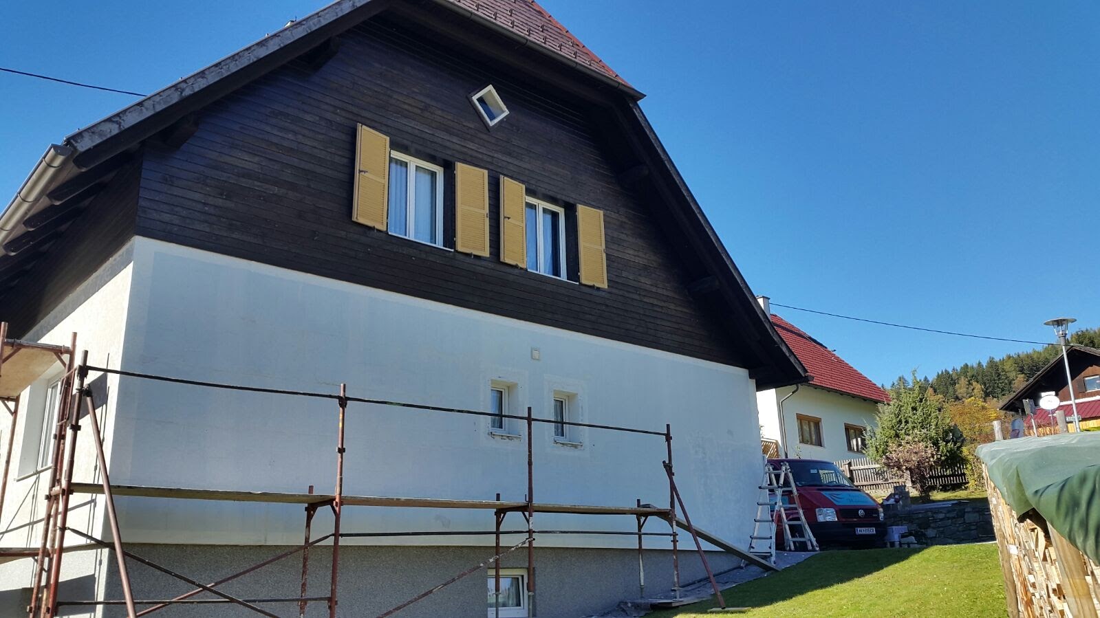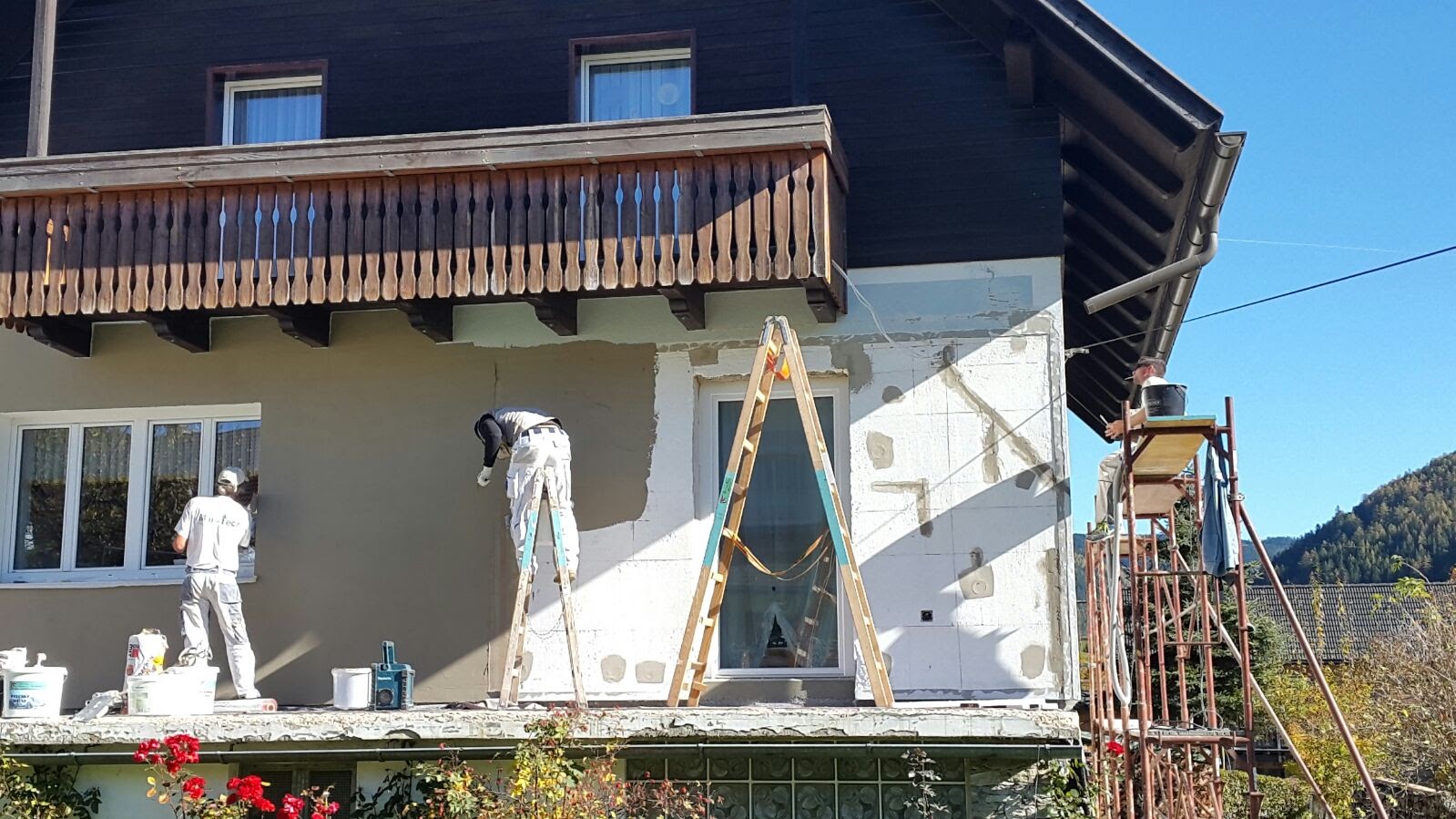 Je nach Bedarf können wir die Fassadenarbeiten in Neunkirchen und Umgebung mit Gerüst oder von einer Hubarbeitsbühne aus erledigen, die sich besonders für unwegsames Gelände eignet.